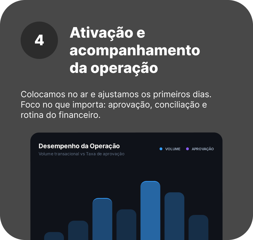 Com uma infraestrutura pensada para operação real, você ganha velocidade, controle e previsibilidade — do checkout até o dinheiro cair.